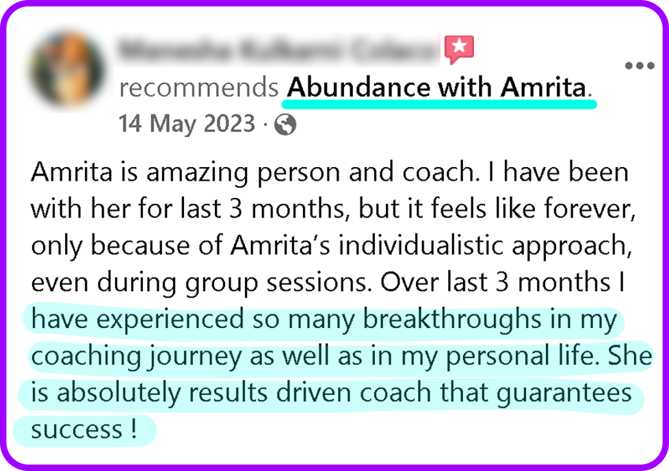✔️ Monthly Live Sessions with Amrita.